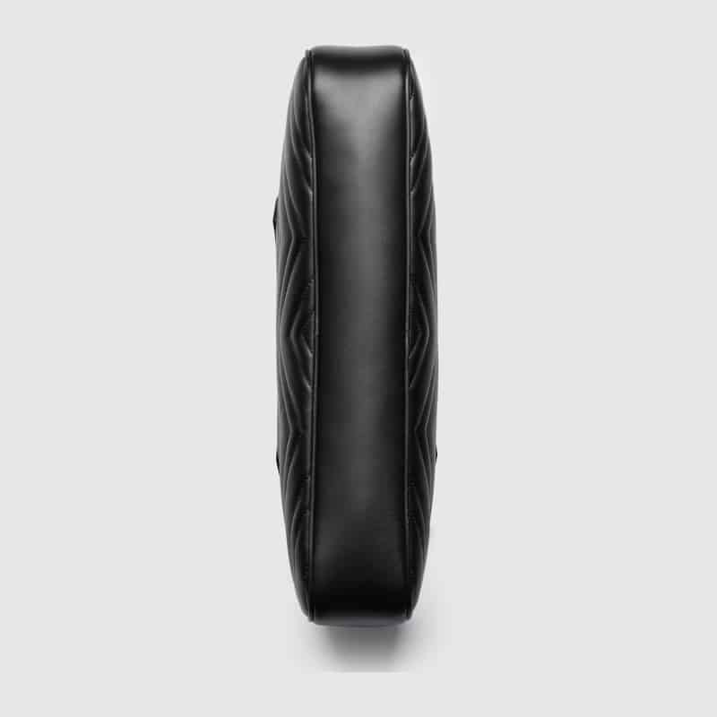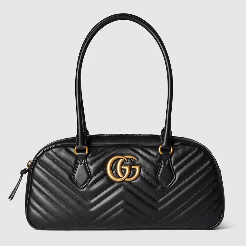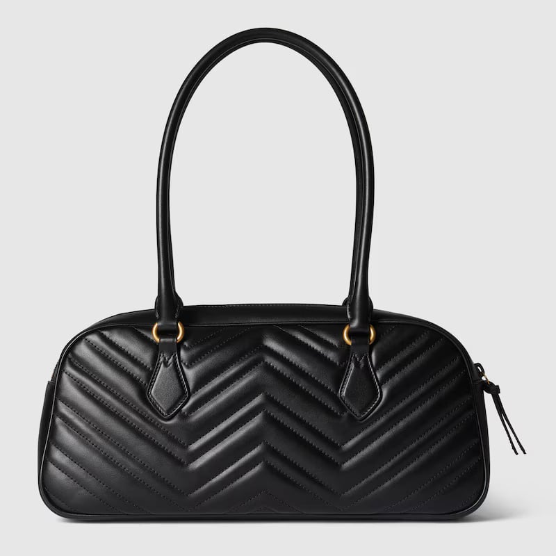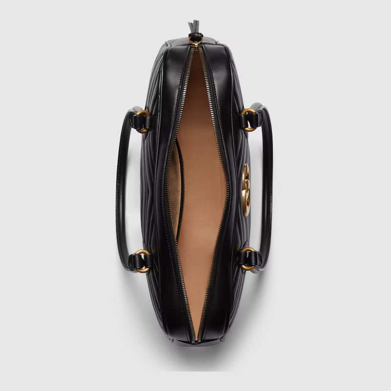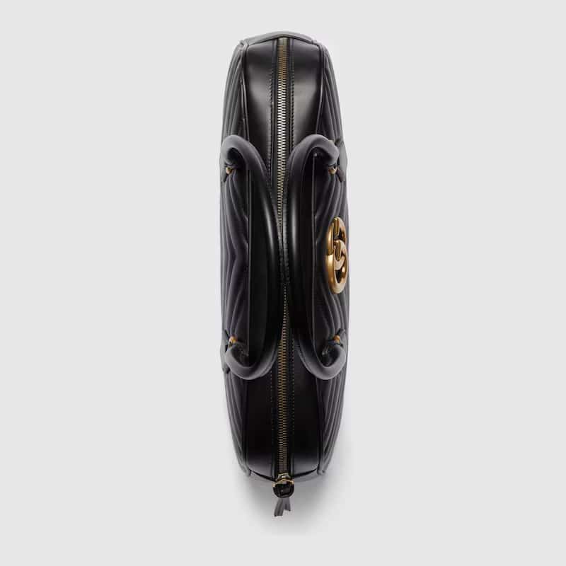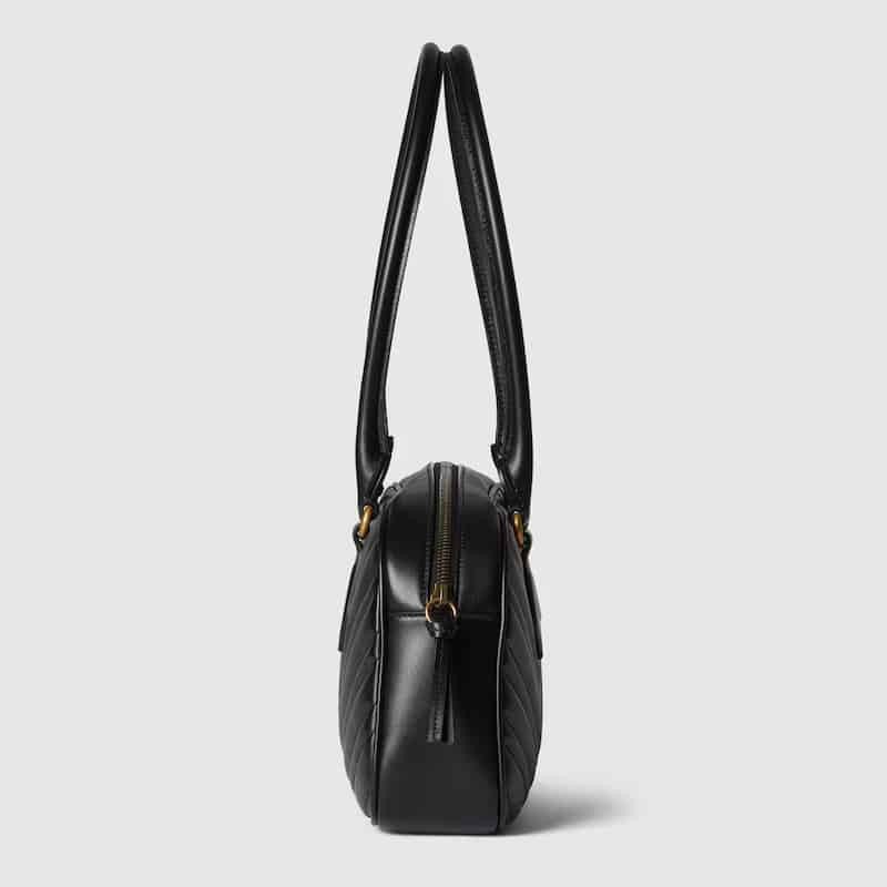 ‘GG Marmont’ handbag in matelassé leather with chevron pattern, metal logo appliqué, zip closure, double handle.